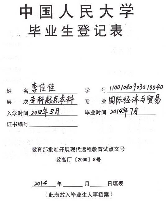 (1)《畢業(yè)生登記表》一式兩份,建議在6月30日至8月26日(周一至周日,上午9:00—12:00,下午13:00—17:00)期間提交,周六、周日不休息