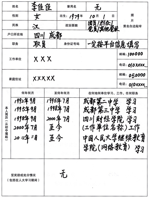 第一、填表時(shí)須用黑色的簽字筆或鋼筆字跡工整,不得涂改,不得折疊、損壞。