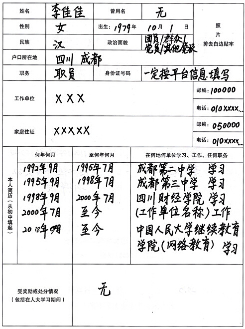 填表時(shí)須用黑色的簽字筆或鋼筆字跡工整,不得涂改,不得折疊、損壞。