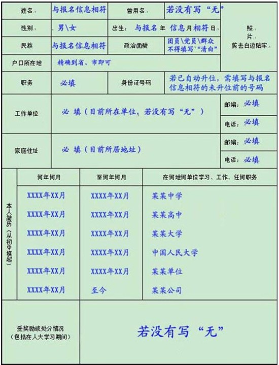 八、畢業(yè)生登記表的填寫請參考以下模板和內(nèi)容: