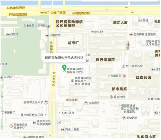 三、考試地點(diǎn):西安市碑林區(qū)含光北路155號(hào)陜西青年職業(yè)學(xué)院(如下圖)