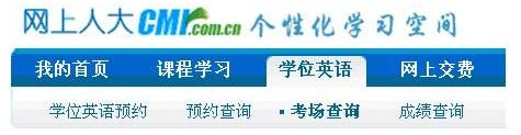 考試組織由北京教育考試院統(tǒng)一安排。請(qǐng)學(xué)生在學(xué)院主頁(yè)http://marijuanajourney.com/右側(cè)學(xué)生登錄 ,輸入用戶名和密碼,即可進(jìn)入個(gè)性化學(xué)習(xí)空間信息頁(yè)面,點(diǎn)擊如下圖所示學(xué)位英語(yǔ)欄目中的考場(chǎng)安排,即可查詢到具體的考場(chǎng)安排信息。