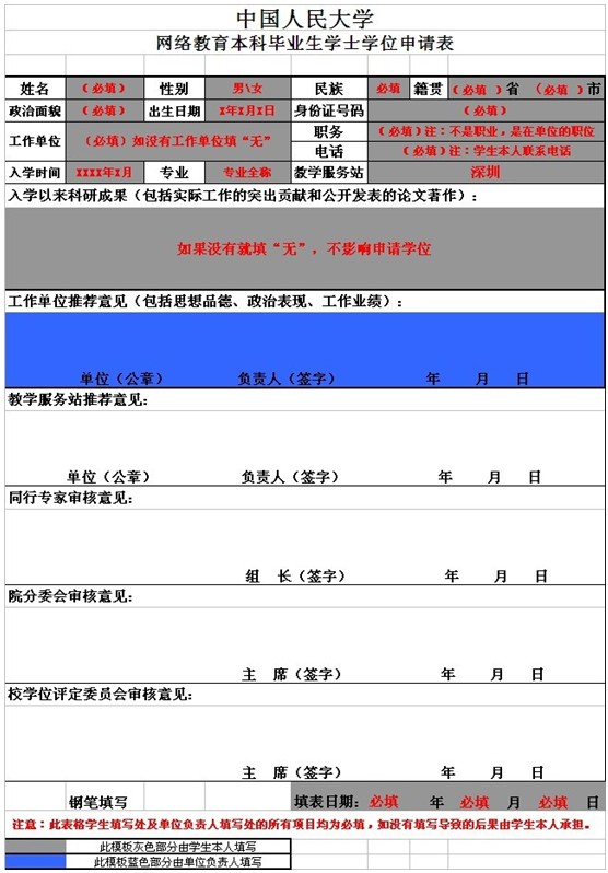 4、學(xué)位申請(qǐng)表中填表特別提醒: