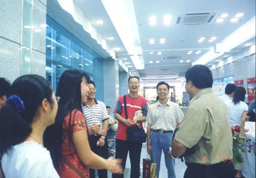 2003年9月7日下午兩點(diǎn),深圳服務(wù)站迎來(lái)了自今年5月搬遷以來(lái)的第一批新生——200309批。在新落成的“成教中心大廈”(現(xiàn)已更名為“航天立業(yè)華庭大廈”)光亮嶄新的一樓大堂和四樓大報(bào)告廳里四處都飄散著新學(xué)期、新面貌、新開(kāi)始的全新的味道。“手遞手——師生真情萬(wàn)里行”的旗幟從北京傳到珠海,傳到廣州,再傳到深圳,作為本條線路的第三站,深圳服務(wù)站覺(jué)得特別榮耀和幸運(yùn),除了本次活動(dòng)得到網(wǎng)院領(lǐng)導(dǎo)的大力支持和關(guān)注之外,正好本次活動(dòng)是我們深圳服務(wù)站0309批新學(xué)員的開(kāi)學(xué)典禮。