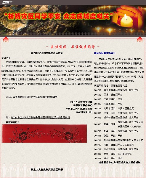 網(wǎng)上人大教職員工為四川受災(zāi)同學(xué)捐款