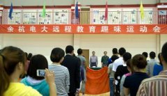 2012年10月27日上午,余杭電大遠程教育首屆趣味運動會在校體藝館二樓順利舉行。近百名遠程教育學員在班主任的組織下積極參與了此次趣味運動會。 伴隨著雄壯的國歌聲,運動會進行了簡短的
