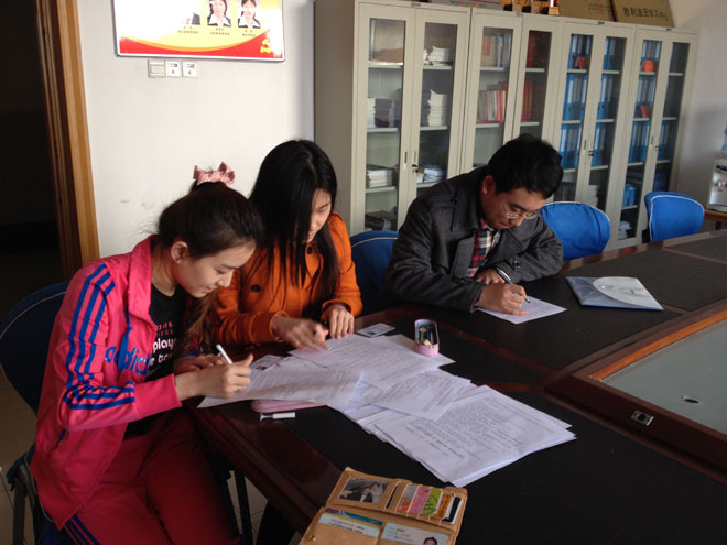 學(xué)生們在考試間隙認真填寫問卷