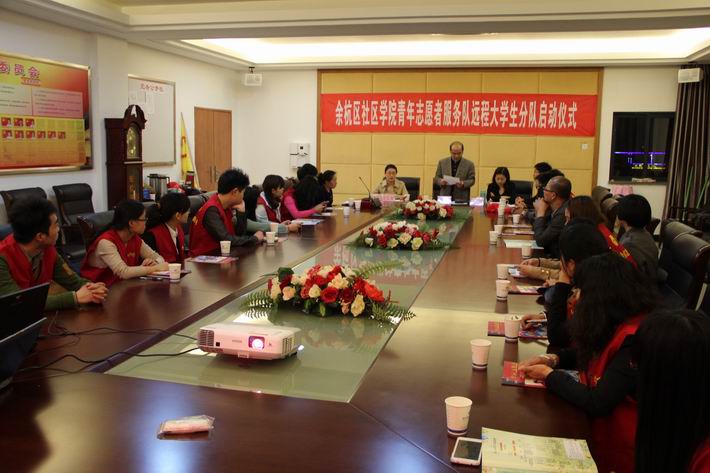 3月27日晚7時,網上人大余杭教學服務中心遠程大學生志愿者服務隊啟動儀式在余杭社區(qū)學院行政樓三樓會議室隆重舉行。出席啟動儀式的領導有余杭社區(qū)學院副院長竺偉航、余杭社區(qū)學院團委書記丁琪、社區(qū)學院繼續(xù)教育處處長周貫平、副處長葉麗玲老師及30名余杭電大遠程大學生志愿者服務隊注冊會員,會議特別有幸邀請到了共青團余杭區(qū)委志愿者工作指導中心干事王憶育到會指導并宣布余杭電大遠程大學生志愿者服務隊正式啟動。啟動儀式由余杭教學服務中心遠程大學生學生會主席董祥龍主持。