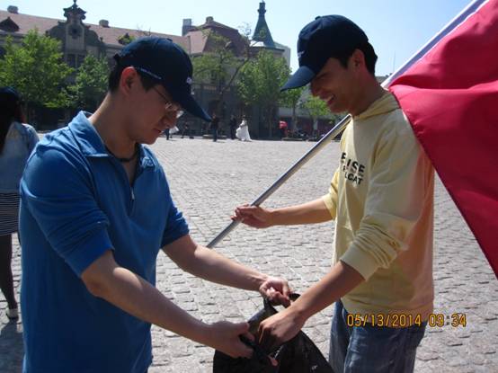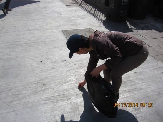 2014年5月13日,網(wǎng)上人大山東外貿教學服務中心的老師和部分學員一起,迎著清晨絢麗的陽光,來到了青島市天主教堂前面的大廣場撿垃圾,為島城增添一份清潔,共建綠色環(huán)保城市。鮮艷的旗幟迎風招展,老師和學員們紛紛手拎垃圾袋,沿途彎腰拾撿小道上的廢棄物、生活垃圾、紙巾、果皮、煙頭、食品袋等各種垃圾。大伙的眼睛專注地盯著地面,搜尋著可以撿拾的垃圾,熱情高漲,形成人人爭為綠色環(huán)保做貢獻的氛圍。