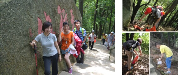 結(jié)束參觀后,全體人員向第二站深圳八景之一——羊臺疊翠出發(fā),開展本次徒步羊臺山的環(huán)保之行。在五星級義工殷江良的帶領(lǐng)下,義工和同學(xué)們參觀了設(shè)在石巖影劇院的U站服務(wù)點,接著在羊臺山廣場上進行“低碳出行 文明登山”的宣傳及簽字活動。在簡單的進行體能補充后,下午1點起由義工擔(dān)任前鋒,帶領(lǐng)全部人員分組正式踏上羊臺山。從拾階而上的層層臺階,經(jīng)過散發(fā)泥土氣息的小道,沿著山泉而建的石路,義工和同學(xué)們一路欣賞著美麗的風(fēng)景,撿拾著山上沿途不易降解的垃圾,相互鼓勵、友好交流、互幫互助、團結(jié)向前。經(jīng)過近4小時的努力和堅持,在穿越大小羊臺后,成功在位于大浪街道的勝利大營救雕像前會合。有同學(xué)感慨的說:“我真沒想到自己能堅持下來,原來我們的能量真的超乎自己想像,今天真的是收獲良多”。“堅持就是勝利”。
