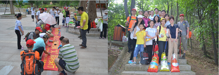 “低碳出行 文明登山”環(huán)保簽名現(xiàn)場 自帶工具撿拾垃圾