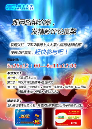 “觀網(wǎng)絡(luò)辯論賽,發(fā)精彩評(píng)論贏獎(jiǎng)”微博活動(dòng)簡(jiǎn)介