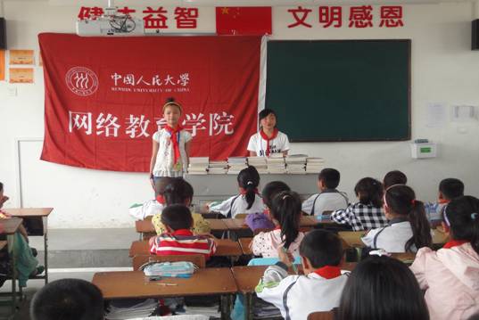 2012年4月25日一大早,成都服務(wù)中心老師和部分同學(xué)帶著同學(xué)們捐贈(zèng)的圖書,來(lái)到青白江區(qū)姚渡小學(xué),給他們送課外書籍。姚渡小學(xué)是四川5.12地震后重新修建的小學(xué),從外觀看,這里的校舍是嶄新的,校內(nèi)也非常的干凈整潔。由于是新建學(xué)校,校內(nèi)的配套設(shè)施都很完善,但同學(xué)們除了課本以外,基本上沒有什么課外讀物?;谶@種原因,還在三月份,成都教學(xué)服務(wù)中心就向在讀的同學(xué)們發(fā)布了為姚渡學(xué)校小學(xué)生捐贈(zèng)課外書籍的倡議,很多同學(xué)都積極響應(yīng),獻(xiàn)出了自己的愛心。特別是孫林和王東同學(xué)不顧辛勞,輾轉(zhuǎn)把書送到中心令老師們非常感動(dòng)。