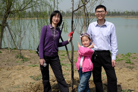 王嵩同學雖然已畢業(yè),但對網(wǎng)上人大情有獨鐘,當知道網(wǎng)上人大的公益活動消息,即以滿腔的熱情和愛心,攜帶家人和孩子積極報名參與學院的植樹活動。在活動當天,熱心為參與的師生服務,跑前跑后,挖坑、填坑,忙得不亦樂乎,他的表現(xiàn)感染了在場所有的人,給植樹活動增添了熱火朝天的氣氛。