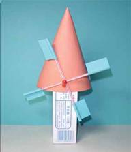 (1)手工小風(fēng)車:主要材料是報(bào)紙(彩紙)、牙膏盒、吸管。