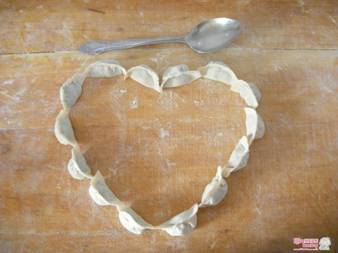 (5)活動(dòng)的另一亮點(diǎn):與老師們(或大孩子們)一起包愛心餃子。