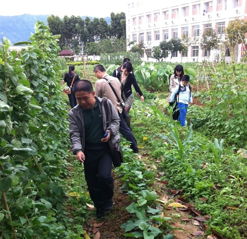 9點(diǎn)半,服務(wù)中心新生、老生和領(lǐng)隊(duì)老師一共28個(gè)家庭共計(jì)58個(gè)人來(lái)到了啟明學(xué)校。該校有70個(gè)老師和30個(gè)學(xué)生,超過(guò)三分之二的面積都是種植區(qū)。在校長(zhǎng)的引導(dǎo)下,大家?guī)е髯缘暮⒆臃稚⑿袆?dòng),先熟悉了種植的各種瓜果,接著開(kāi)始義務(wù)拔草并摘取成熟的瓜果。10點(diǎn)半,我們?cè)诓賵?chǎng)上和特殊學(xué)校的部分學(xué)生舉行了一場(chǎng)足球聯(lián)誼賽。中午聚餐時(shí),學(xué)員都稱(chēng)贊此次的公益活動(dòng)比以往的交流活動(dòng)更有意義,能在大自然陶冶自己的心靈,更能教育自己的孩子,希望教學(xué)服務(wù)中心今后能多舉行一些可以全家參與的公益活動(dòng)。