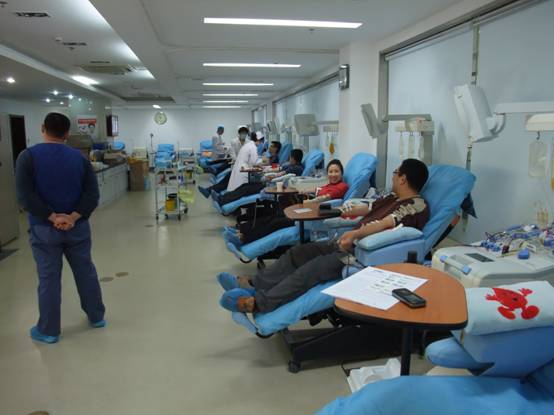 填表、檢查、抽血,一切井然有序。有人捐獻(xiàn)全血,有人捐獻(xiàn)單采血小板,服務(wù)中心的老師帶頭積極參與。看著從手臂中不斷流出的殷紅鮮血,我們感到由衷的高興,因?yàn)槲覀儓?jiān)信我們的鮮血可以挽救處于危急中的生命。而適量獻(xiàn)血不會(huì)對(duì)我們的身體造成任何不良影響。