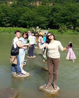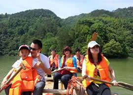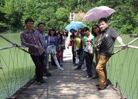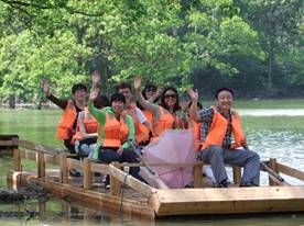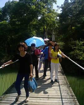 洗凈了心靈之后我們來到了被人們譽(yù)為東方“亞馬遜”、南國“九寨溝”的龍?jiān)磵{景區(qū),我們踏著青石,劃著木板船,過著刺激的情人橋,蕩漾在春心橋頭,徜徉于大自然的美景當(dāng)中,愛好攝影的同學(xué)更是拿著相機(jī)穿行在花鳥叢中流連忘返。歡樂之余,我們不忘記公益的主題,一路之上,我們相互提醒不要隨手亂拋廢棄物,看到必經(jīng)之路上有其他游人扔掉的垃圾和飲料瓶,我們都隨手撿拾到自帶的垃圾袋中,集中扔到公園垃圾箱。這一日讓我們放松了心情,忘卻了都市里的緊張工作,沐浴在大自然中,愜意的享受陽光帶給我們的快樂、溫暖和幸福還順便凈化了環(huán)境!