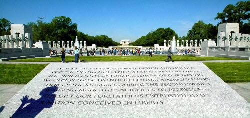 這座二戰(zhàn)紀念碑坐落在美國首都華盛頓林肯紀念堂和華盛頓紀念碑之間