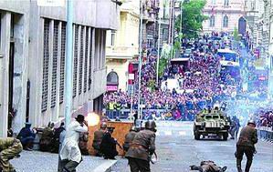 5月7日下午,在布拉格公共電臺大樓附近,驟然響起的槍聲、炮聲和爆炸聲震動了整個街區(qū),坦克車的轟鳴伴隨著人群的吶喊讓人真實感受了戰(zhàn)爭的恐怖氣氛。這是捷克政府為紀念反法西斯戰(zhàn)爭勝利60周年在布拉格舉行的系列活動的一部分,重演“布拉格起義”戰(zhàn)斗場景。組織者為真實再現(xiàn)當年的戰(zhàn)斗場面,從軍事博物館借來二戰(zhàn)期間的裝甲車和坦克車,甚至抵抗戰(zhàn)士和納粹黨衛(wèi)軍的扮演者所用的武器和服裝也是當年遺留下來的。戰(zhàn)斗場面更是逼真,中了槍的起義者身上流著“鮮血”倒在地上,足以亂真的慘烈場景讓幾個不明就里的孩子當場被嚇得哭了起來。
