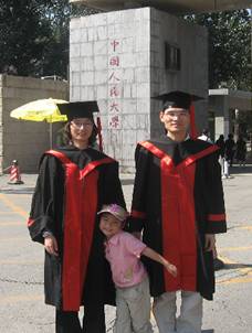 “眾里尋她千百度,暮然回首,那人卻在燈火闌珊處”,網(wǎng)上人大從甫一出現(xiàn),就成了我們莘莘學(xué)子心中最理想的求學(xué)場所。通過二年多的刻苦學(xué)習(xí),終于迎來了這激動人心 的一刻,我們終于畢業(yè)啦!求學(xué)二十余載,在網(wǎng)上人大修成正果,并最終雙雙取得了學(xué)士學(xué)位,也彌補(bǔ)了我們?nèi)松囊淮笕焙。這次人大之旅,我相對其他學(xué)員有點(diǎn)“特殊”,因?yàn)槲沂且患胰诙紖⒓恿诉@個(gè)活動,我們夫妻倆同時(shí)是人大網(wǎng)院的畢業(yè)生,還有就是我們5歲的女兒,小家伙聽說去北京人大興奮的晚上都睡不著覺。其實(shí),我是想讓她也提前感受一下人大的校園氣氛,為將來求學(xué)作好準(zhǔn)備。