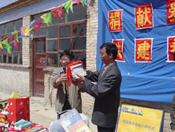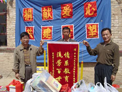 | ?? 捐贈儀式上,顧院長把象征知識?的圖書交給廷元希望小學(xué)校長。 | ? 廷元希望小學(xué)安校長為人大網(wǎng)院送上錦旗,對人大網(wǎng)院多年來的資助表示感謝。 |
