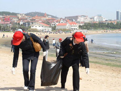 人大網(wǎng)院山東外貿(mào)教學(xué)服務(wù)站舉辦了向市民和游客宣傳有關(guān)綠色環(huán)保和綠色奧運(yùn)的相關(guān)知識,積極動手清除沿海一線廢物垃圾的“綠色環(huán)?!惫婊顒?。