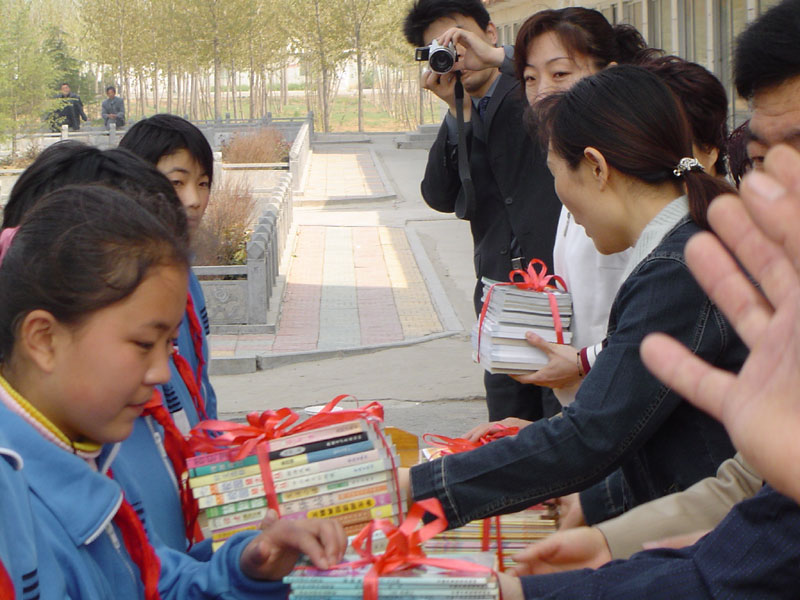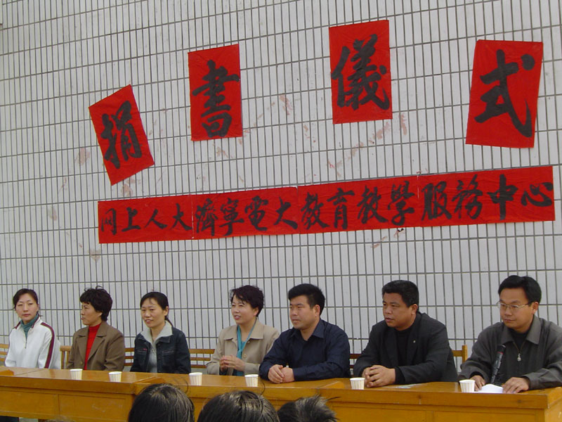 網(wǎng)上人大部分學(xué)員在濟寧教學(xué)服務(wù)中心老師們的帶領(lǐng)下,來到加祥縣紙坊鎮(zhèn)二中捐贈圖書,向師生們表達了中國人民大學(xué)網(wǎng)絡(luò)教育師生對農(nóng)村孩子們的深情厚意。此次活動得到了廣大學(xué)員的熱情參與,學(xué)員們捐書的捐書,捐錢的捐錢,展現(xiàn)了人大師生良好的精神風(fēng)貌。