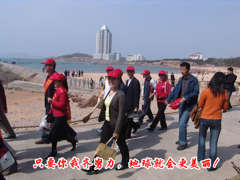 網(wǎng)上人大山東外貿(mào)教學(xué)服務(wù)中心組織了青島海濱木棧道清潔公益活動?!懊阑鄭u,綠化青島,凈化青島”,這樣的標語隨處可見,同學(xué)們用自己的行動身體力行裝扮青島,體現(xiàn)了青島人良好的精神風(fēng)貌。
