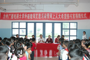 中國(guó)人民大學(xué)網(wǎng)絡(luò)教育臺(tái)州電大教學(xué)服務(wù)中心全體師生積極響應(yīng) 2007 網(wǎng)上人大公益活動(dòng)號(hào)召,共捐贈(zèng) 1585 元,捐書(shū) 60 多冊(cè),盡一份自己的力量來(lái)幫助貧困學(xué)校的孩子建一個(gè)做夢(mèng)都想擁有的 “希望 圖書(shū)室”。
