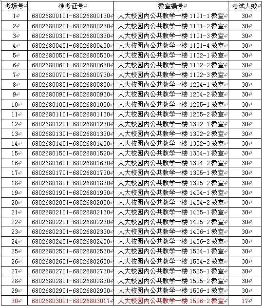 考試地點(diǎn): 人大校園內(nèi)公共教學(xué)一樓