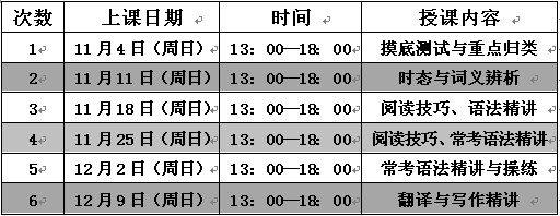 2012年12月份統(tǒng)考英語(yǔ)面授輔導(dǎo)班報(bào)名通知