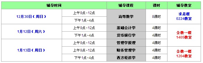 為了幫助同學(xué)們順利通過(guò)考試并取得更好成績(jī),北京服務(wù)中心針對(duì)1月份課程考試將組織6門(mén)課程的免費(fèi)考前輔導(dǎo)。經(jīng)過(guò)歷次考前輔導(dǎo)班成績(jī)情況分析,參加輔導(dǎo)的同學(xué)在課程考試通過(guò)率方面有大幅提高,請(qǐng)同學(xué)們踴躍參加。具體輔導(dǎo)安排詳見(jiàn)如下: