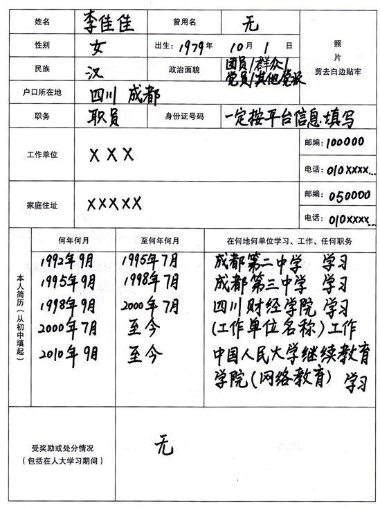 第一、填表時(shí)須用黑色的簽字筆或鋼筆字跡工整,不得涂改,不得折疊、損壞。