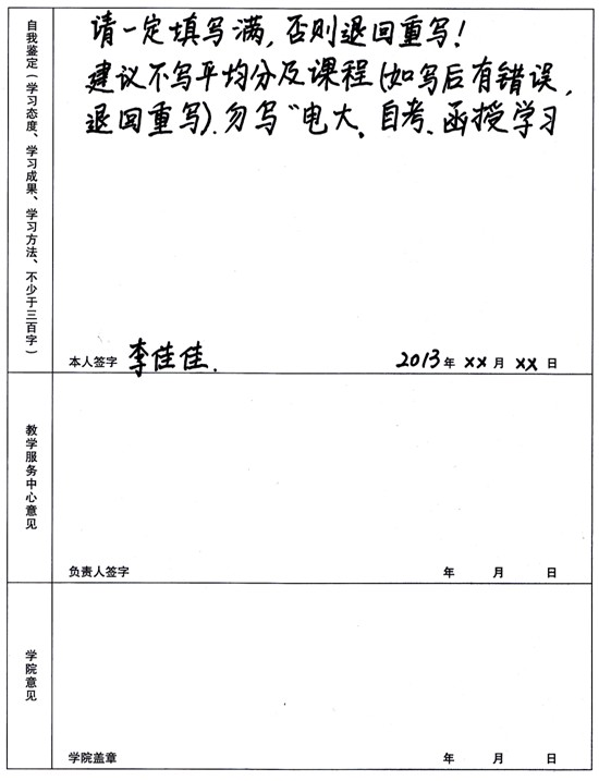 5、自我鑒定:一定要寫滿,否則退回重寫。