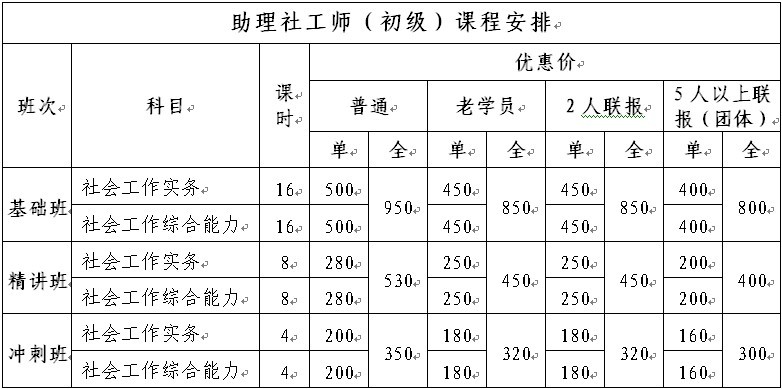 2. 平日、周末均可授課,依據(jù)社會(huì)工作者職業(yè)水平考試各科題量比例,有針對(duì)性的訓(xùn)練,側(cè)重突破考點(diǎn)。