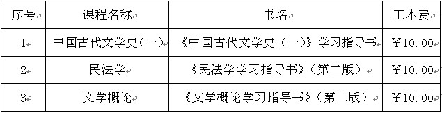 本學(xué)期三門課程有學(xué)習(xí)指導(dǎo)書:《中國古代文學(xué)史(一)》、《民法學(xué)》、《文學(xué)概論》。