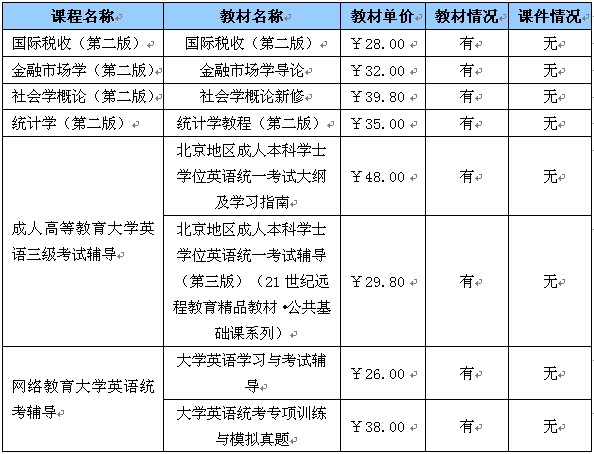 一套是教委出版的《北京地區(qū)成人本科學(xué)士學(xué)位英語統(tǒng)一考試大綱及學(xué)習(xí)指南》,單價(jià)48元。同學(xué)們可在選課中預(yù)訂,選課結(jié)束后也可以通過個(gè)人學(xué)習(xí)空間選課欄目的直購教材功能進(jìn)行“直接訂購”;一套是中國人民大學(xué)出版社出版的《北京地區(qū)成人本科學(xué)士學(xué)位英語統(tǒng)一考試輔導(dǎo)》,單價(jià)29.8元。在選課期間,此教材也可以通過個(gè)人學(xué)習(xí)空間選課欄目直購教材功能進(jìn)行“直接訂購”。