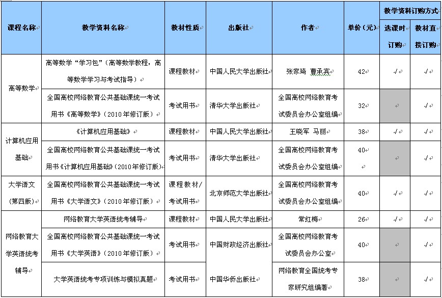 教育部對(duì)統(tǒng)考課程規(guī)定了四種考試用書,為了更好地輔導(dǎo)學(xué)生學(xué)習(xí)并通過考試,學(xué)院又為統(tǒng)考課程安排了相應(yīng)的課程教材。課程教材和考試用書的訂購方法如下: