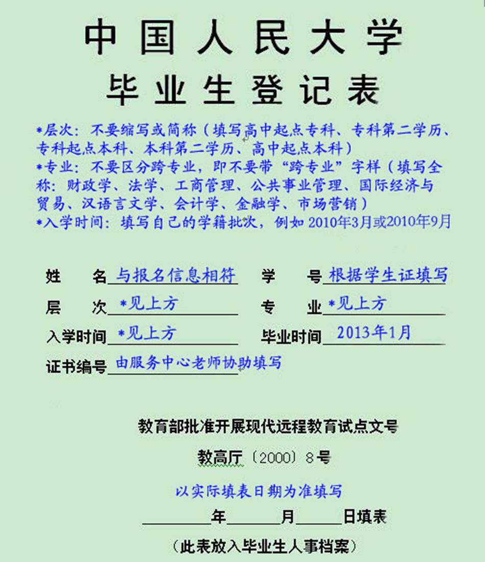 三、《畢業(yè)生登記表》不能涂改,請(qǐng)同學(xué)們務(wù)必認(rèn)真仔細(xì),也不能使用涂改液,如填寫錯(cuò)誤可用刀片將寫錯(cuò)的地方輕輕刮掉,該表后期會(huì)存入個(gè)人檔案;