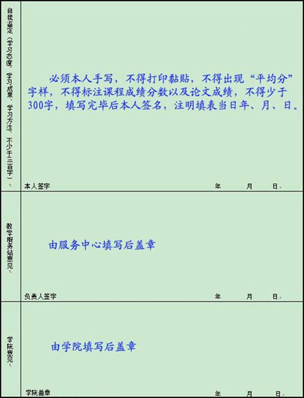 二、請(qǐng)提前撰寫好字?jǐn)?shù)不少于300字的的“個(gè)人鑒定”根據(jù)在網(wǎng)院學(xué)習(xí)期間的態(tài)度、成果、方法等方面來(lái)總結(jié)。個(gè)人鑒定必須手寫,不能粘貼打印稿;