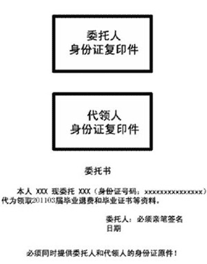 如需委托他人代領(lǐng),必須出示本人及代領(lǐng)人身份證原件,以及由本人親筆書寫的委托書(三份資料,一份都不能缺少:本人身份證原件、代領(lǐng)人身份證原件、本人親筆書寫的委托書,屆時留存委托書及身份證復(fù)印件)。