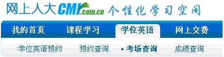 考試組織由北京教育考試院統(tǒng)一安排。請學(xué)生在學(xué)院主頁http://www.marijuanajourney.com/右側(cè)學(xué)生登錄 ,輸入用戶名和密碼,即可進(jìn)入個性化學(xué)習(xí)空間信息頁面,點(diǎn)擊如下圖所示學(xué)位英語欄目中的考場安排,即可查詢到具體的考場安排信息。