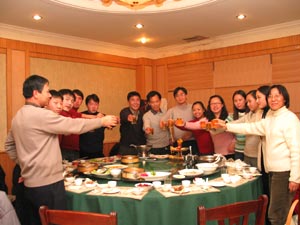 現(xiàn)在已經(jīng)是隆冬時(shí)節(jié),剛剛下過一場大雪,真的是冰天雪地,外面寒氣逼人,可是在海鮮食府里卻是溫暖如春的畫面:在溫馨的音樂聲中,來自不同崗位的同學(xué)們和遼寧電大服務(wù)站的老師圍坐在一起,人人笑容滿面,那種親切自然的交流似春風(fēng)一般融化了寒冷的空氣,讓人覺得舒心愜意。